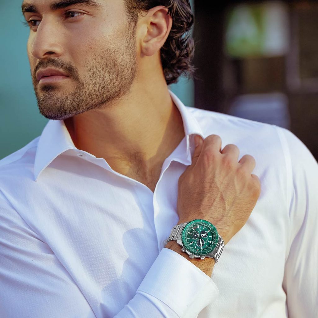 Of the revolutionary Citizen watch technologies, you are sure to know Eco-Drive, which stands for solar-powered watches. Both artificial and natural light pass through the dial and charge the battery via the solar cell, which drives the watch movement. The reserve charging period is 6 months, and when stored and not carried, it can be up to 7 years in hibernation mode. Other Citizen technologies: radio-controlled watches (Skyhawk AT), voice-controlled watches and much more.