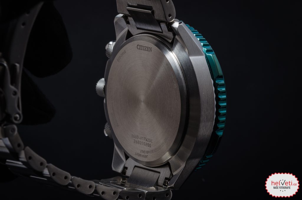 The case of the Citizen Promaster Sky Eco-Drive Radio Controlled CB5004-59W, including the bracelet, is made of stainless steel. Inside this case works the in-house Citizen E660 movement, which offers absolutely accurate time thanks to the Radio-Controlled system, i.e. time synchronization by radio signal. Other functions can be relied on, such as battery indication, overcharge prevention, undercharge warning with two-second jumps of the second hand, or switching to power-saving mode. The stopwatch function, alarm, or 24-hour sub-dial at the 9 o'clock position can also be used. Very practical is the date and day of the week display. On the two-way rotating lunette we find a slide rule, used by aviators to calculate the amount of fuel remaining.