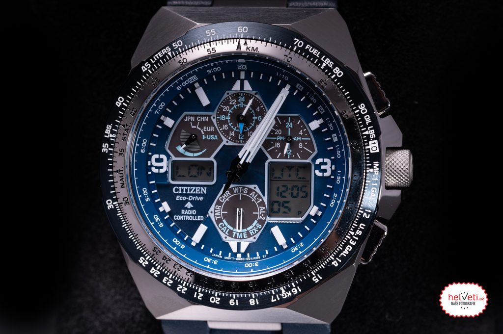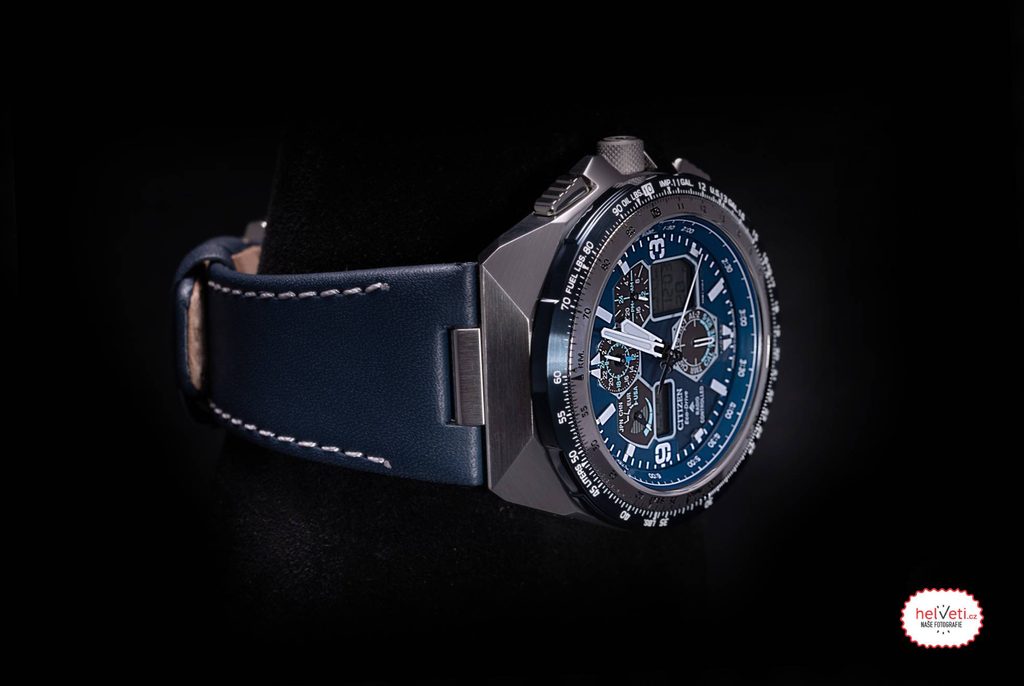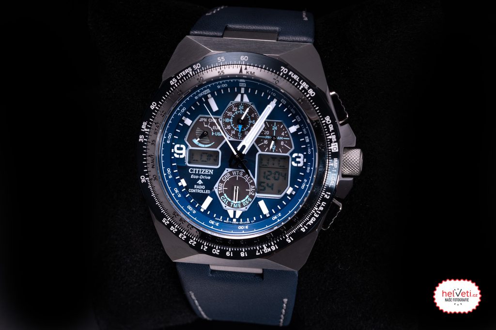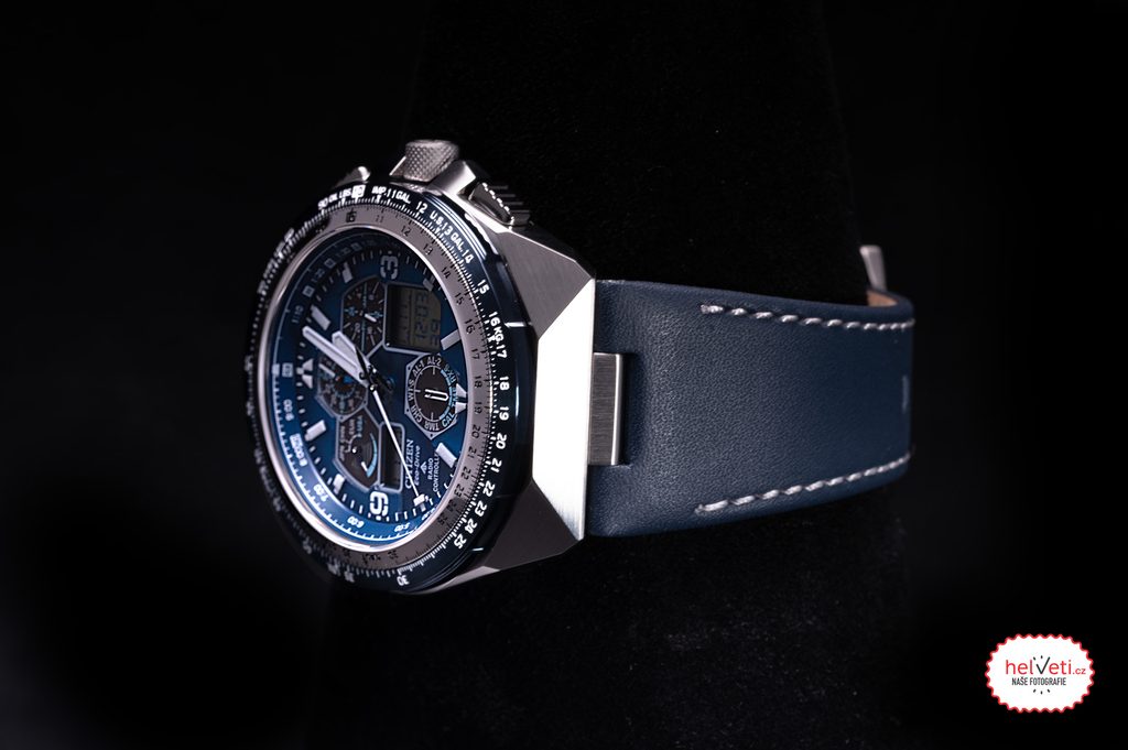 The case of the Citizen JY8078-01L is made of stainless steel and is complemented by a leather strap. Inside this case works the in-house Citizen U680 movement, which offers absolutely accurate time thanks to the Radio-Controlled system, i.e. time synchronization by radio signal. You can also rely on other functions, such as battery indication, overcharge prevention, undercharge warning with two-second jumps of the second hand, or switching to power-saving mode. You can also make use of the stopwatch function, automatic calendar (showing day, month and year), time zones, daylight saving time, UTC, timer, 2x alarm, display illumination, energy saving mode 1 and 2, shock detection functions or, for example, the slide rule for simple slide rule calculations.