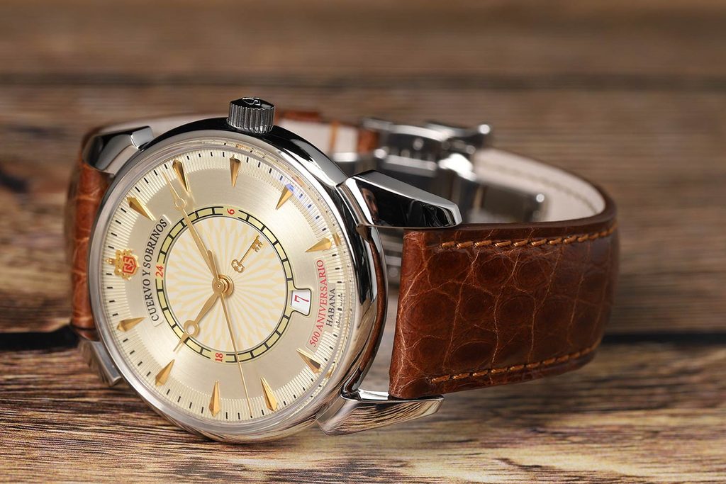 Inspired and animated by the golden years of Havana, Cuervo y Sobrinos watches evoke a flamboyant and legendary way of life. These watches bear witness to a magical and luxurious world made up of exceptional quality, elegance, creativity, exoticism and joie de vivre. Swiss manufacture, Latin heritage: the exceptional combination of Swiss craftsmanship with a vibrant Latin heritage gives Cuervo y Sobrinos watches a unique and inimitable value within the Swiss watchmaking industry.