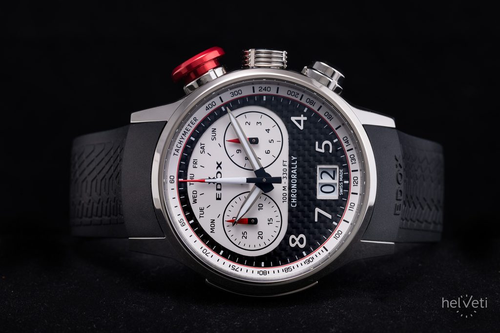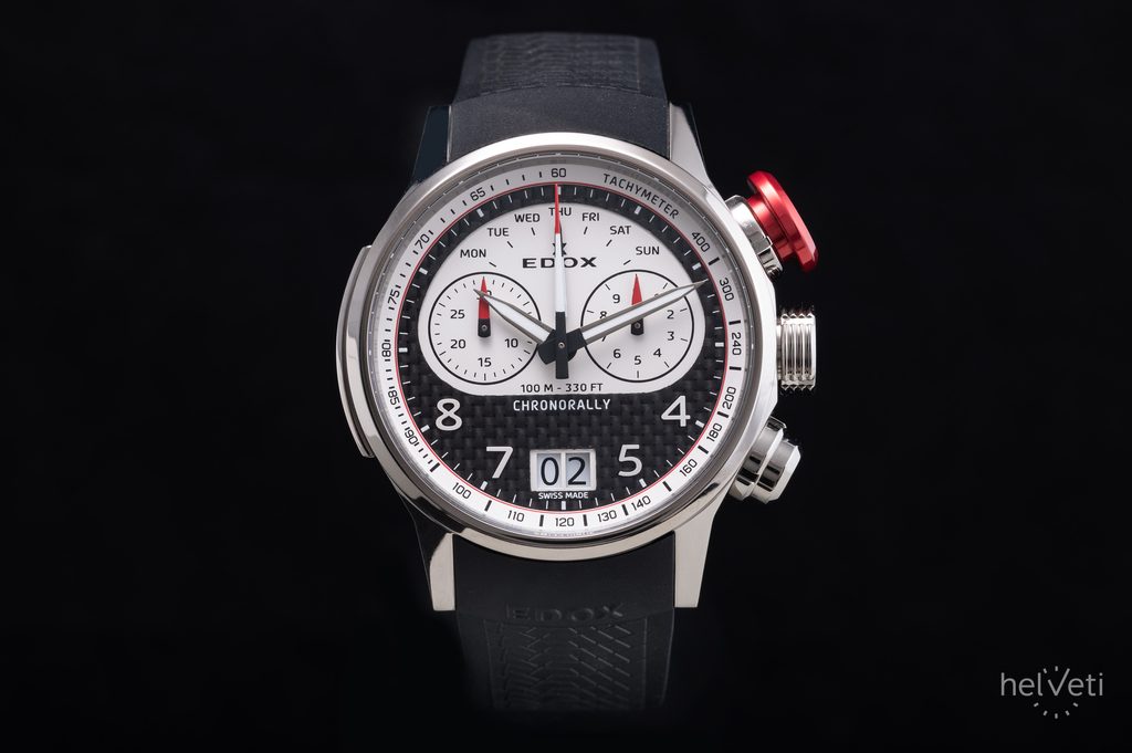 Edox Chronorally 45 Limited Edition - a new limited edition in the popular Chronorally range, celebrating the collaboration with BMW MOTORRAD Motorsport and the ROKiT Superbike team. Produced in a limited edition of 600 units, this special limited edition exemplifies EDOX's commitment to the range's durability and dynamic design, offering motorcycle enthusiasts a complete experience that connects them to the high-speed world of superbike motorcycle racing.