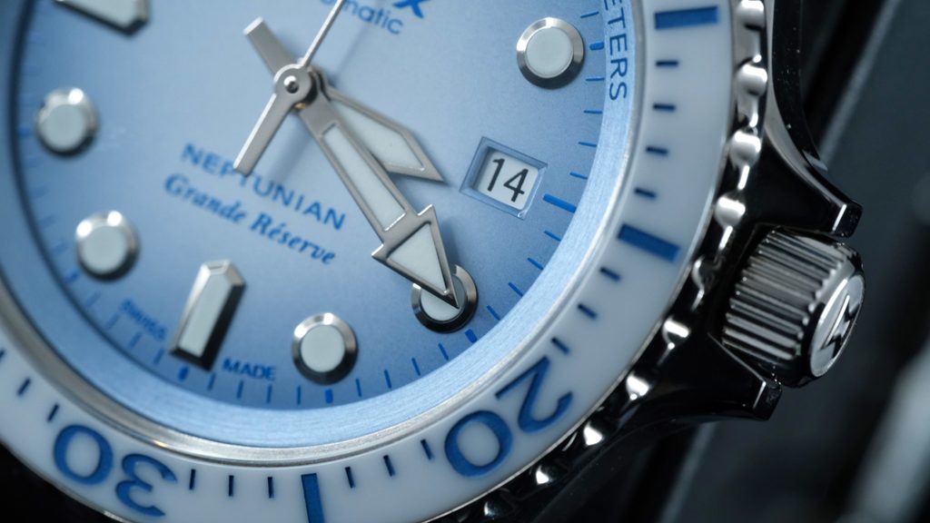 Made from the same DNA as the original rugged Neptunian models, the new Neptunian Grande Réserve models also feature a scratch-resistant rotating ceramic lunette and a 3mm thick sapphire crystal to ensure the dial retains its original look for many years.