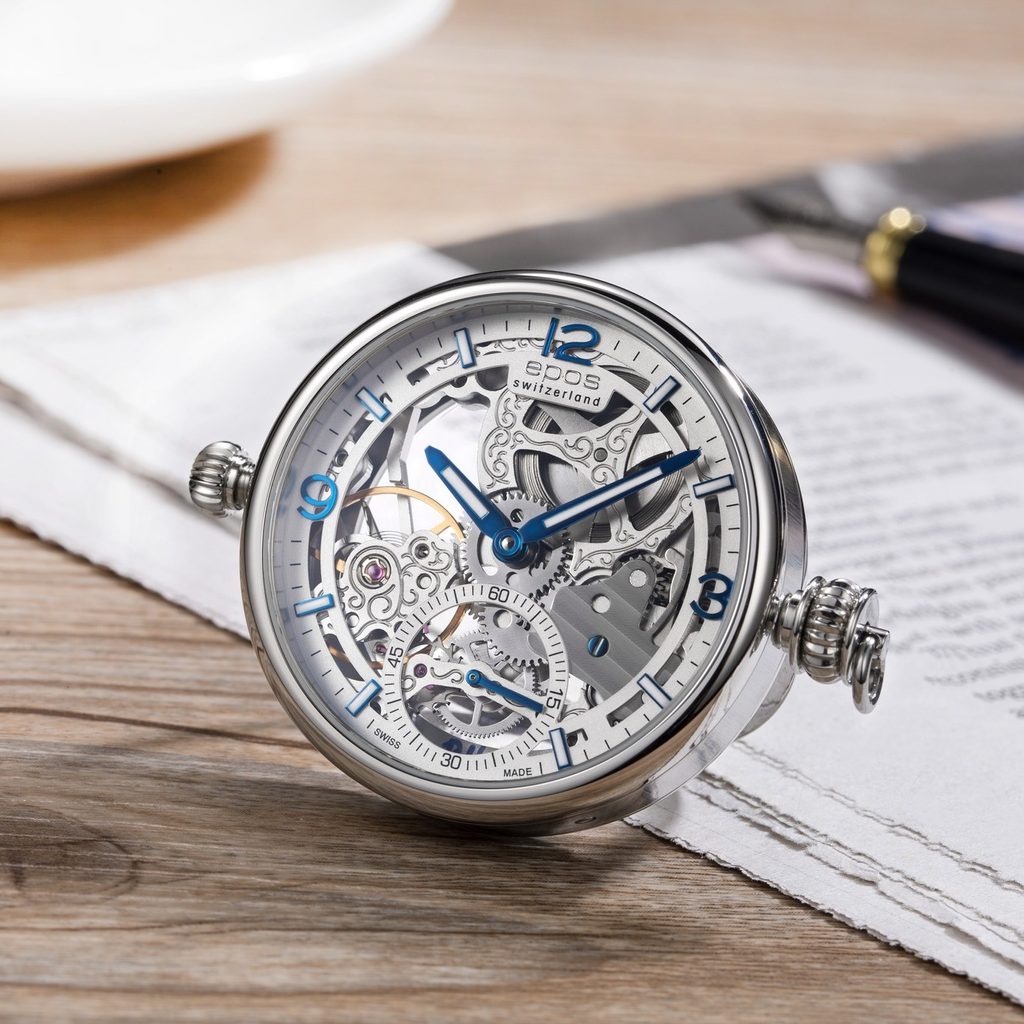 The Epos Oeuvre D'Art 3429.195.20.58.25 watch with a see-through dial and off-centre seconds hand offers the possibility of turning a wristwatch into a pocket watch in a flash.