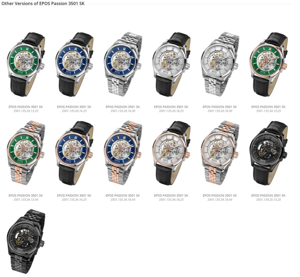 The Epos Passion SK 3501.135.20.13.30 is powered by a Swiss automatic movement, the Sellita SW200 , with manual winding and a power reserve of up to 38 hours. Its operation can be observed from both sides of the watch thanks to the skeletonization of the movement and the transparent dial. The watch is made in a combination of steel case and steel bracelet.