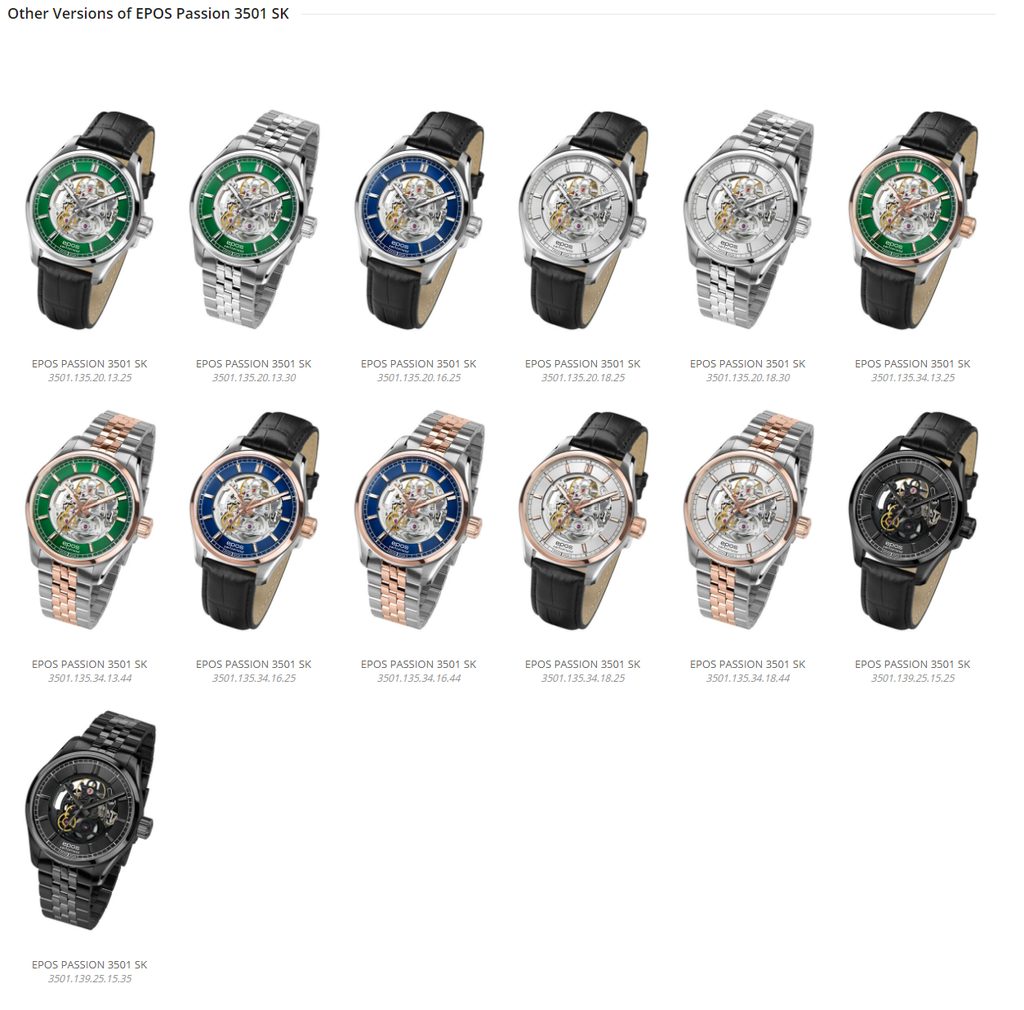 The Epos Passion SK 3501.135.20.16.30 is powered by a Swiss automatic movement, the Sellita SW200 , with a manual winding option and a power reserve of up to 38 hours. Its operation can be observed from both sides of the watch thanks to the skeletonization of the movement and the transparent dial. The watch is made in a combination of steel case and steel bracelet.