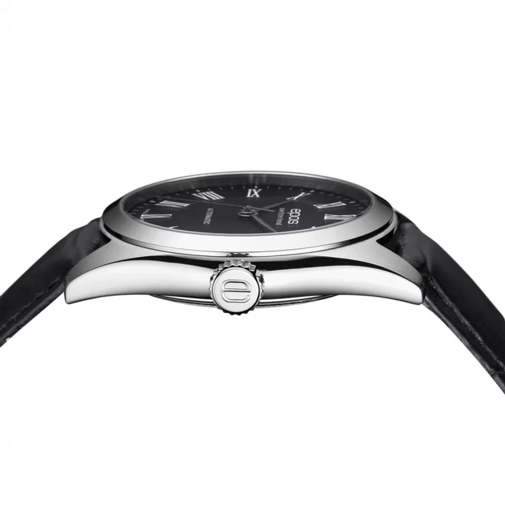 The case of the Epos Timeless Classic 39mm 3411.131.20.25.25 is made of stainless steel. Inside it, there is a reliable Swiss mechanical movement with automatic winding ETA 2824. It has a power reserve of around 40 hours and thanks to the opening on the back of the watch, we can enjoy a view of its operation. At position 3 there is a handy date display. Everything is protected by a sapphire crystal.