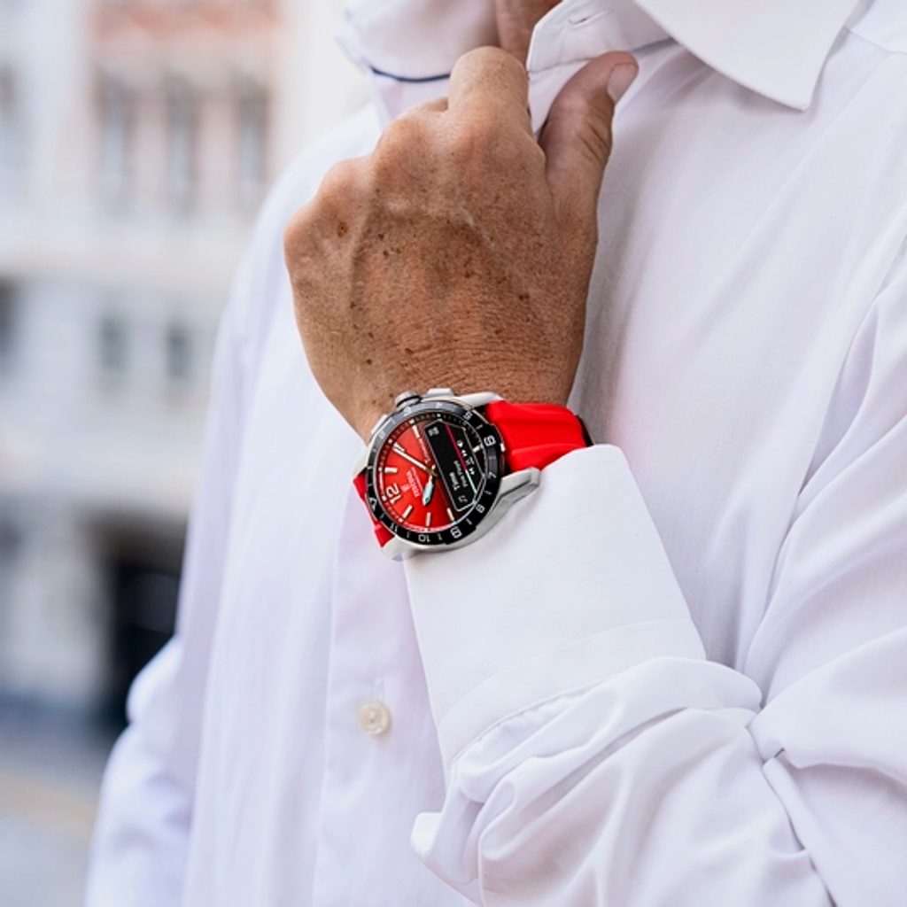 The watch is protected by a sapphire crystal with exceptional resistance to scratches and other mechanical damage. The model is complemented by a supple silicone strap in the colour of the dial with a width of 22.8 mm and a classic steel-coloured buckle clasp.
