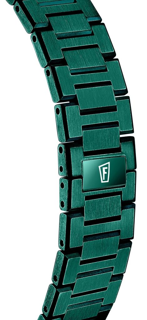 The original dial design with a rayed effect and the distinctive indices, blend in beautifully with the elegant style. The practical side of the watch is also complemented by the steel movement, which, like the case, has a green PVD finish.