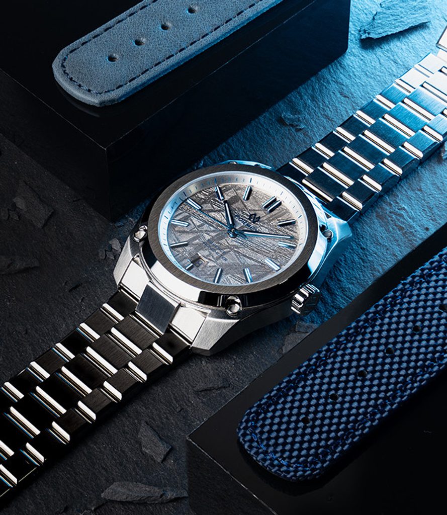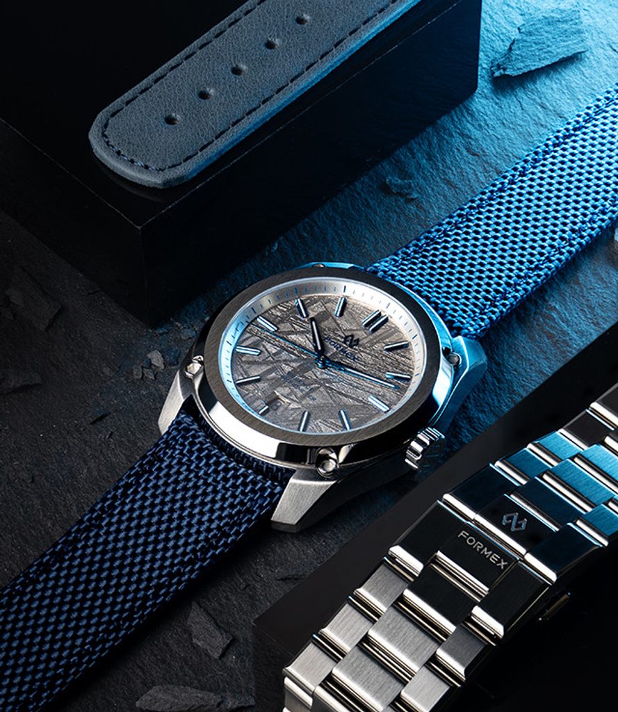 Formex has also used an innovative process of electroplating the dial surface for the Space Ghost models, which has the advantage of the meteorite's high iron content. The result is the highlighting of the Widmanstätten pattern, a structure typical of the Muonionalusta meteorite. Each texture is unique and each dial is therefore an original and unique work of art.