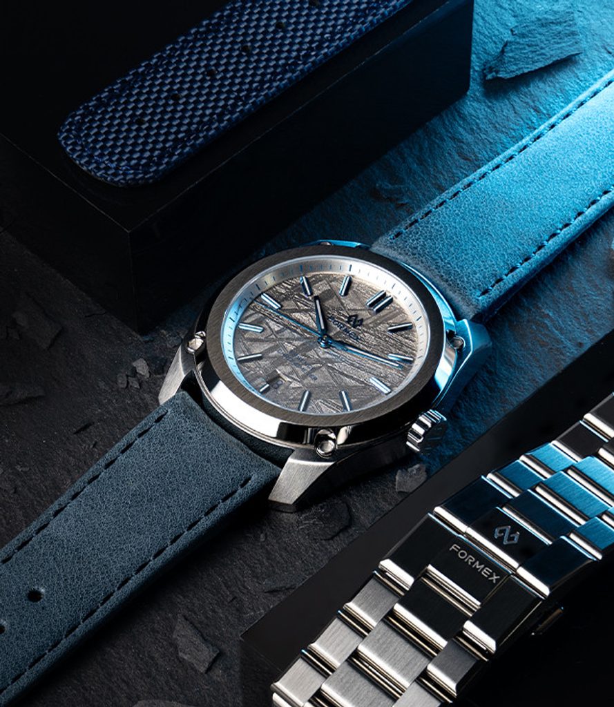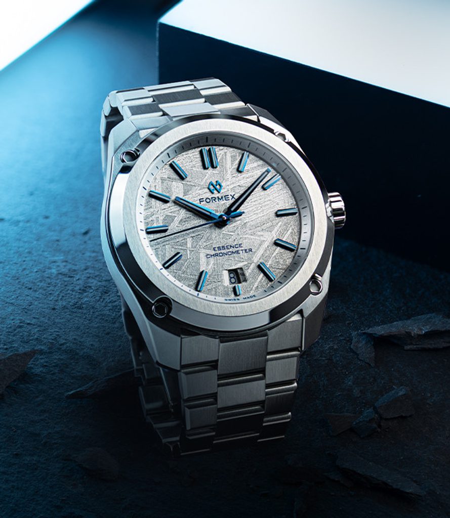 To mark its 25th anniversary , Formex is introducing another noveltie. The Essence model in a new 41 mm case with a special dial made from a 4.5 billion-year-old meteorite, produced in an exclusive annual series of 150 pieces. In addition to the new size, the new edition brings precise technical improvements in every respect.