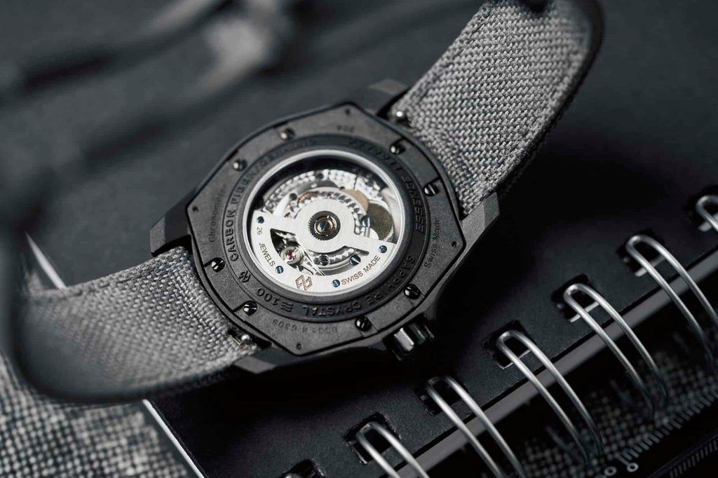 The case of the Formex Essence Leggera 43 Forged Carbon watch is a combination of carbon and ceramic. The base of the case is all carbon and is complemented by a black ceramic lunette with spectacular reflections. This combination creates a very durable unit that does not show any scratches even with prolonged use.