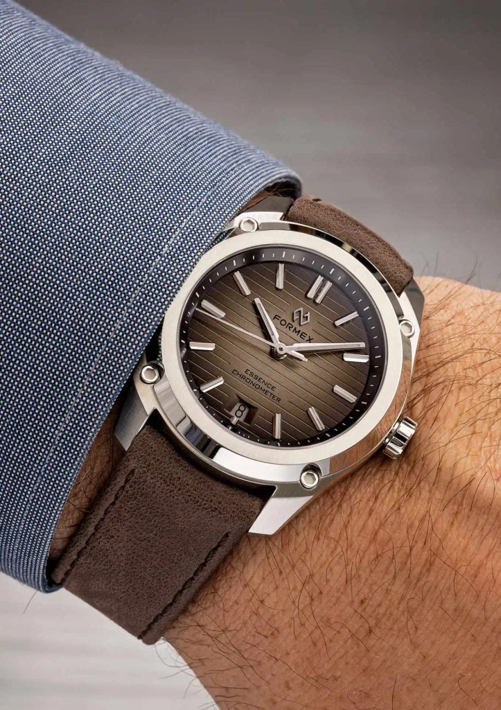 The Swiss Formex Essence ThirtyNine Automatic Chronometer Degrade watch impresses at first glance with its distinctive brushed case with spectacular polished surfaces and distinctively textured dial. It is a modern take on a versatile watch suitable for any occasion, featuring simple lines and great clarity. With their overall set of features, the Formex Essence models are very popular with watch fans.