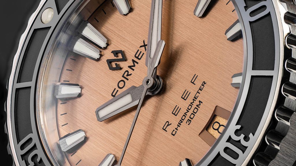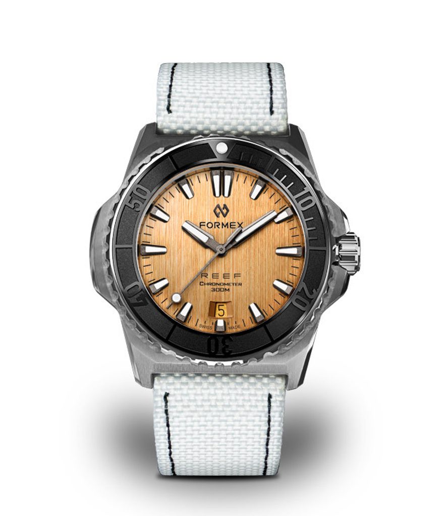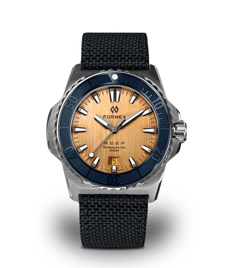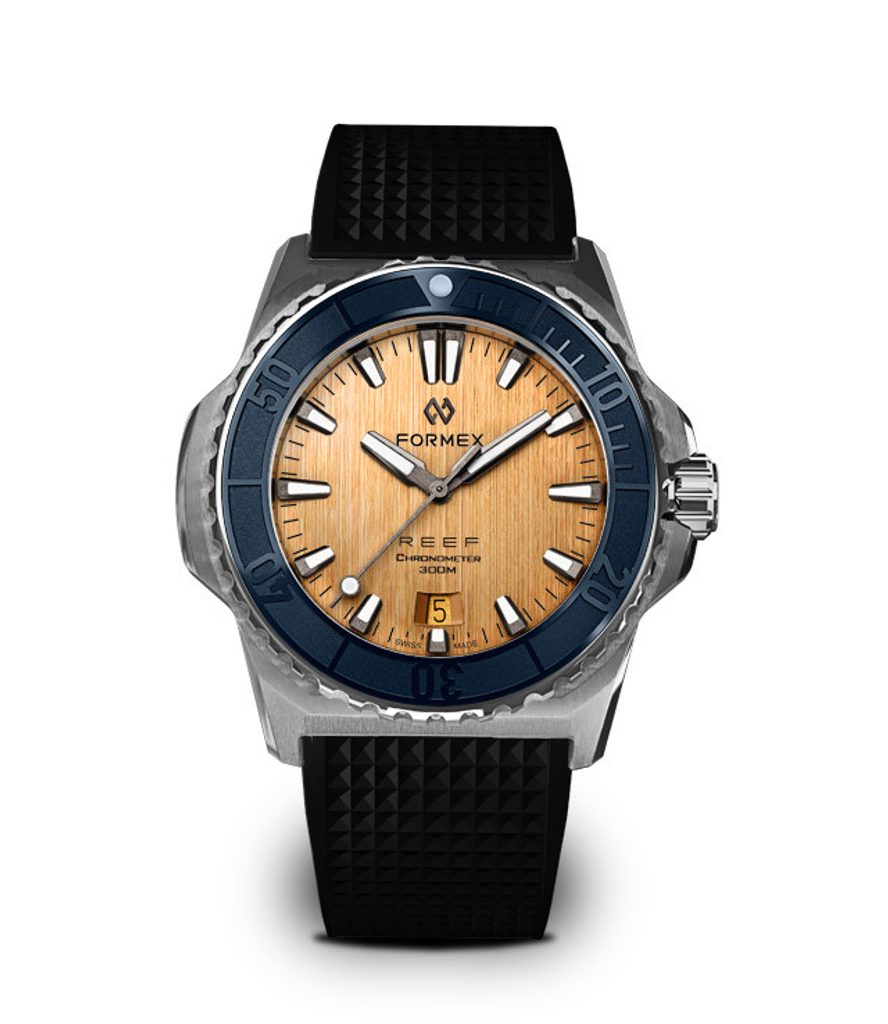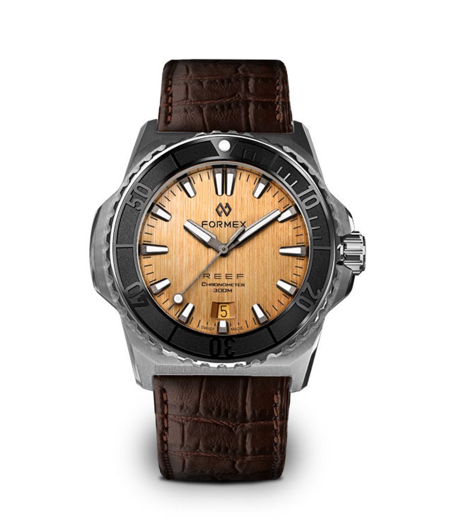 The Swiss Formex Reef 39.5 Automatic Chronometer Bronze Dial diving watch impresses at first glance with its distinctive bronze dial and clearly recognizable case. It is a modern take on a diver's watch suitable for any occasion, featuring simple lines, high durability and excellent clarity.
