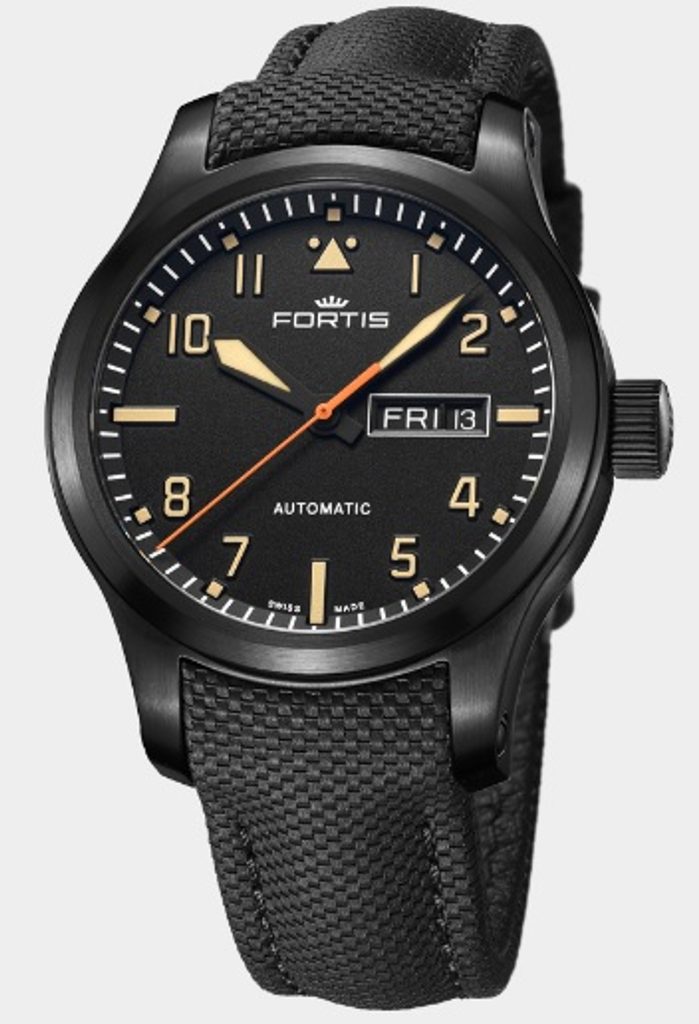 The Swiss Fortis Aeromaster Stealth F4020007 watch impresses at first glance with its typical pilot design with clear Fortis brand signature. It is decorated with perfect clarity, robustness and durability. This watch will serve you well not only in the cockpit of an aircraft, but also in everyday wear.