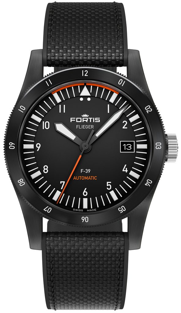The Swiss Fortis Flieger F-39 Werk 7 Mission Black Limited Edition F4220028 watch impresses at first glance with its typical pilot design with clear Fortis brand signature. It is decorated with perfect clarity, robustness and durability. This watch will serve you well not only in the cockpit of an aircraft, but also in everyday wear. Fitted with the new Werk 7 manufacture movement, this model is available in a limited edition of just 100 pieces for the whole world.