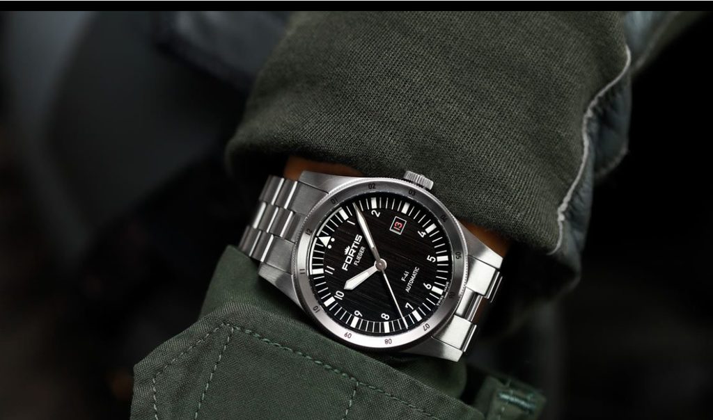 The Swiss Fortis Flieger F-41 Automatic F4220017 watch impresses at first glance with its typical pilot design with clear Fortis brand signature. It is decorated with perfect clarity, robustness and durability. This watch will serve you well not only in the cockpit of an aircraft, but also in everyday wear.