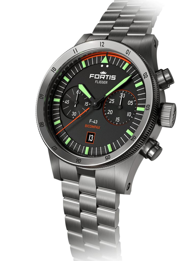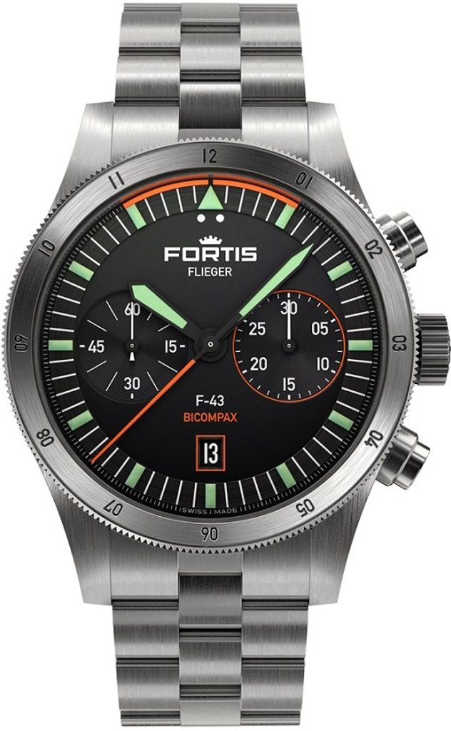 The Swiss Fortis Flieger F-43 Bicompax F4240004 watch impresses at first glance with its typical pilot's design with a clear Fortis signature. It is decorated with perfect clarity, robustness and durability. This watch will serve you well not only in the cockpit of an aircraft, but also in everyday wear.