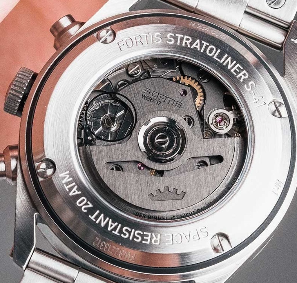 TheFortis WERK 17 has been developed and manufactured in collaboration with La Joux-Perret and is the first movement to be designed and manufactured specifically for use in space. The movement has so far been tested in the stratosphere in collaboration with the Swedish Space Corporation, where thirteen bare, unprotected watches were attached to a nacelle mount. It was carried into the stratosphere by a balloon powered by helium gas. The data was then recorded on the device below. Of course, the watch's survival in the stratosphere was not the ultimate goal. It was also a prerequisite, among other things, that the precision of the operation be undisturbed. But this is only the beginning of the Fortis WERK 17's space mission. In cooperation with the Swedish Space Corporation, the movement is to be sent 30km into space to see if it can withstand harsh conditions such as microgravity, extreme temperatures and radiation.