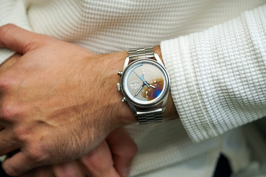 The dial of this watch is made of titanium and each piece is hand-exposed to open fire. This creates unique and unpredictable colors and shades from deep blue to purple. This perfectly clear dial is protected by a sapphire crystal that is extremely scratch resistant. The double-sided anti-reflective coating ensures excellent legibility even in direct sunlight. The SuperLuminova luminescence, located on the hands, enables legibility in darkness and low-light conditions. The water resistance of this model is 200m, so it can handle even greater contact with water, such as swimming or diving to about 20 meters. The water resistance is supported by a screw-down crown.