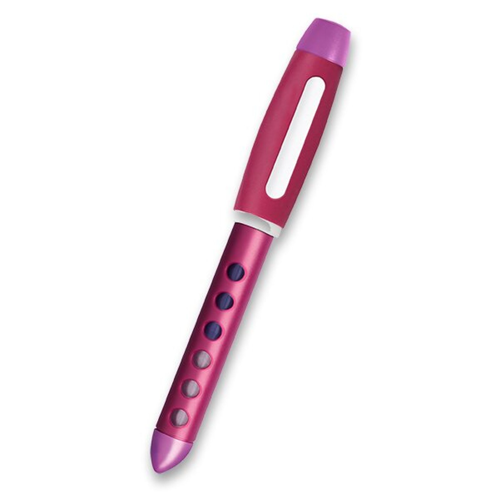 The pen has a barrel with an ergonomic universal grip area made of soft material, which promotes a correct three-finger grip on the writing instrument. The grip zone is specially developed for right-handed and left-handed users. There is also an ingeniously shaped snap-on cap that prevents rolling on the desk, a window for checking the ink cartridge contents in the bottle and a high-quality iridium tip that is resistant to even higher pressure.