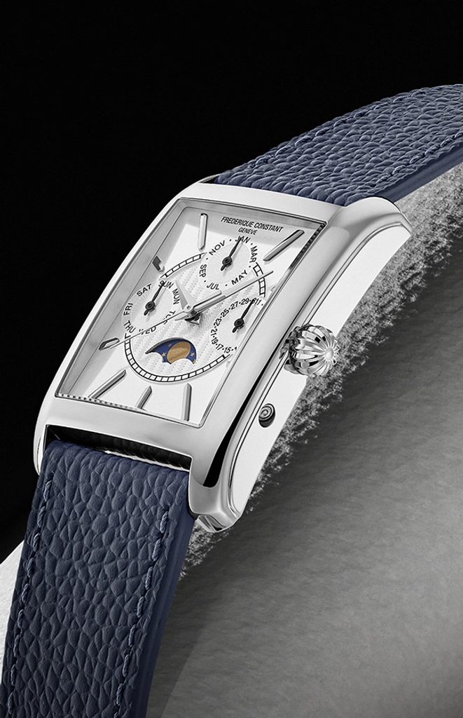 The Frederique Constant Classics Carree Calendar Moonphase FC-265S4C6 men's watch belongs to the Classics series and its elegant look makes it suitable as a social accessory. However, it is also perfect for everyday wear.