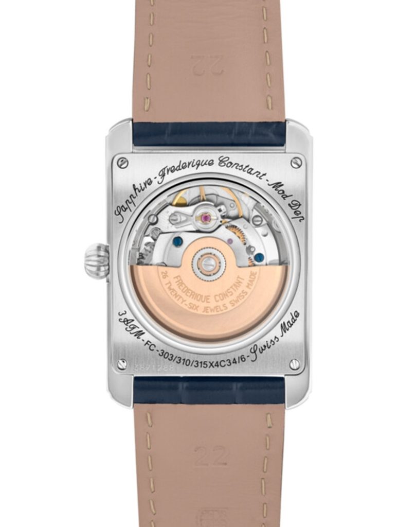 The Frederique Constant Classics Carrée Heart Beat Automatic FC-311N4C6 men's watch belongs to the Classics series and its elegant look makes it suitable as a social accessory. However, it is also perfect for everyday wear. Thanks to its square shape, this model evokes the retro atmosphere of the 1920s. The Heart Beat design provides a see-through dial on the flywheel. This design has been typical of the Frederique Constant brand since its early days.