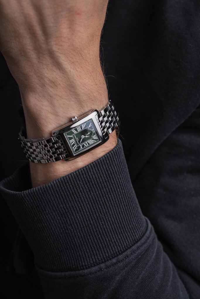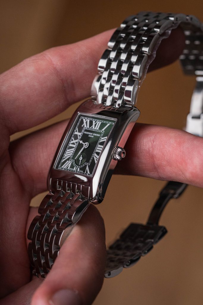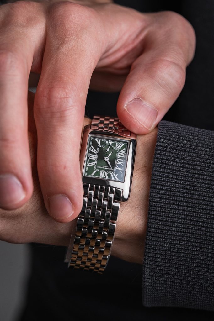 The Frederique Constant Classics Carrée Small Seconds Quartz FC-235GR2C6B watch is part of the Classics line and its elegant look makes it suitable as an accessory for company. However, it is also perfect for everyday wear. Thanks to its square shape, this model evokes the retro atmosphere of the 1920s. The case with a diameter of 36×25.2 mm will be appreciated by men with average or smaller wrists, but also by ladies.