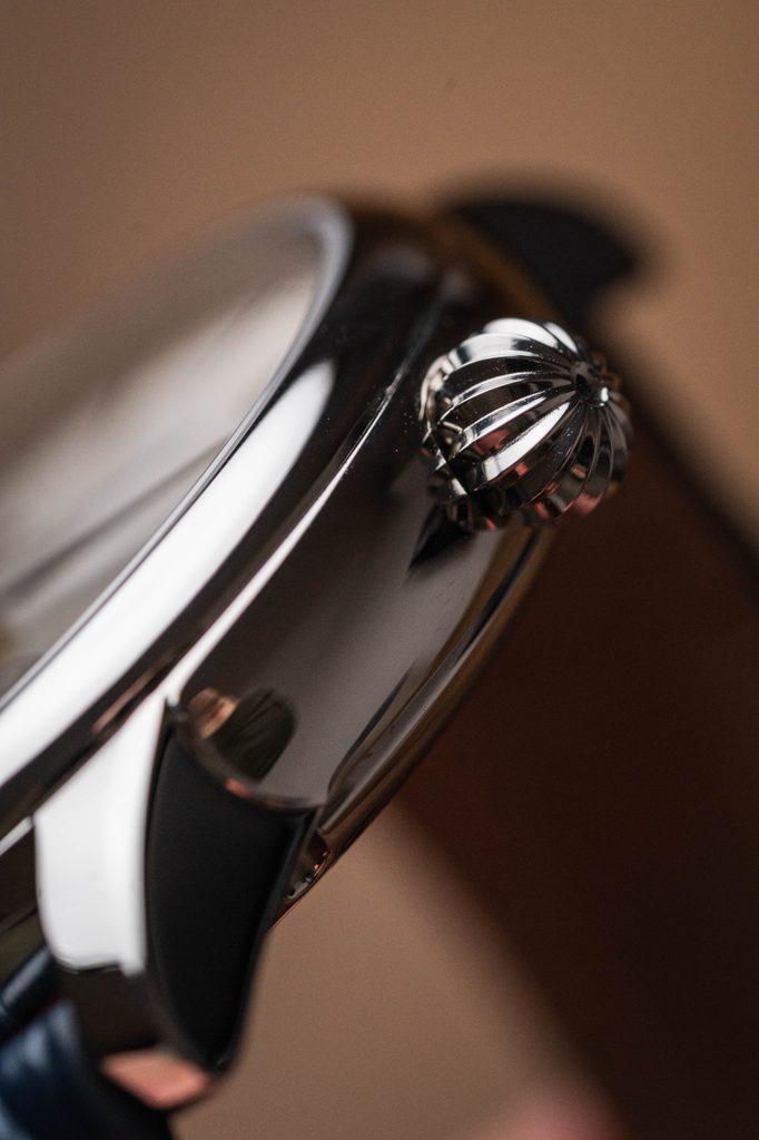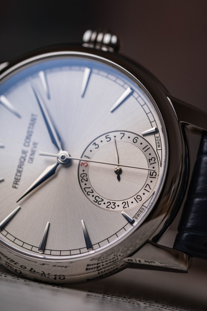 Developed by Frederique Constant in 2024, the Manufacture FC-706 runs at 28,800 semi-frequencies per hour (4Hz) and has 26 jewels. The movement has an automatic winding with the option of manual crown winding and a hacking function, i.e. stopping the second hand when ordered. Its main advantage is the unusual design of the date marker in the sub-dial at the six o'clock position. The power reserve is an excellent 72 hours, i.e. 3 days. This is the thirty-second in-house movement of Frederique Constant.