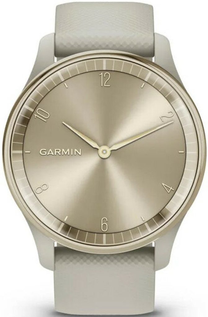 Hybrid smartwatch vívomove® Trend Cream Gold 010-02665-02 offers a classic analog style with a cleverly hidden display. Available in several color variants, it combines smart, fitness, and health functions for an active lifestyle. Garmin vívomove® Trend Cream Gold 010-02665-02 is the ideal choice for athletes of all disciplines. Its functions can be used not only during sports but also in everyday wear.
