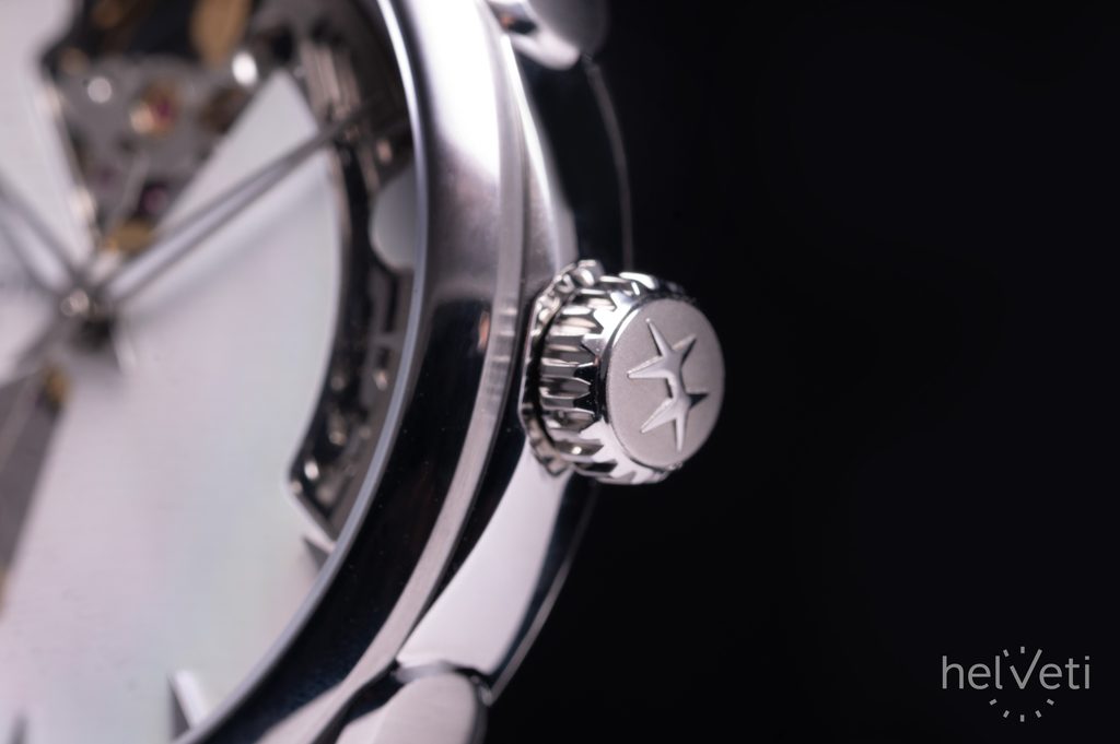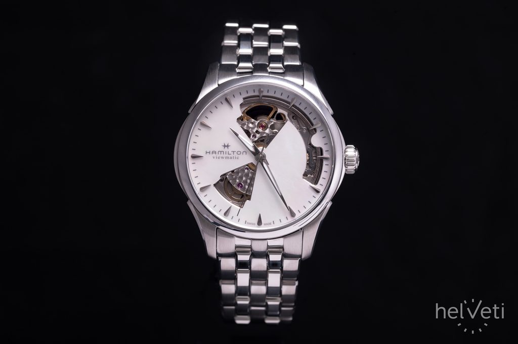 The Hamilton Jazzmaster Open Heart Lady Auto H32215190 is part of the Jazzmaster range and its elegant design makes it suitable for a special occasion in company, but at ease for everyday wear. Thanks to the Open Heart, the model provides a see-through dial on the flywheel.