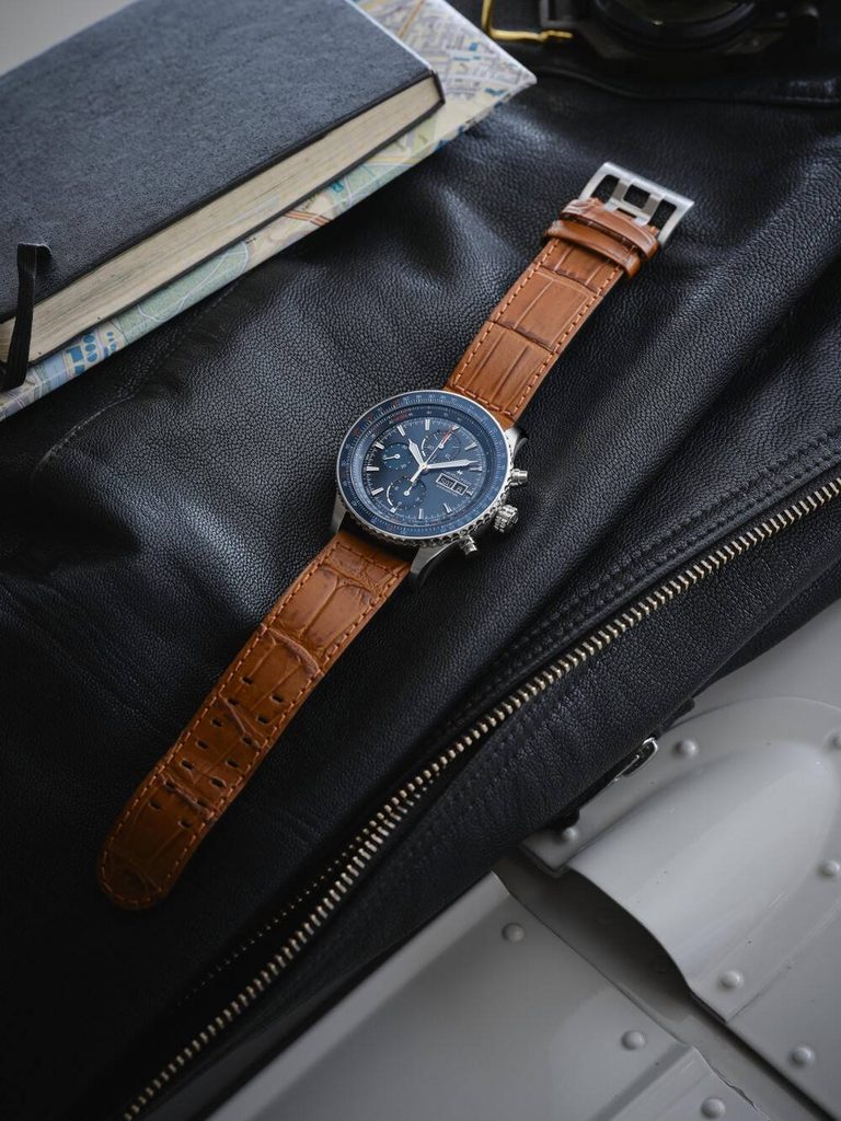 The model stands out for its excellent legibility and easy clarity, which is required for aviation watches. The black dial is protected by a sapphire crystal. The sapphire crystal is a great advantage in watches as it is almost impossible to scratch. The anti-reflective layer guarantees great legibility even in the harsh sunlight.