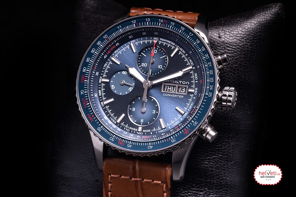 The Hamilton Khaki Aviation Converter Auto Chrono H76746540 will especially appeal to aviation enthusiasts. The Khaki Aviation collection is designed with pilots in mind and built for a life of adventure.