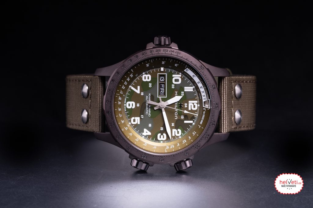 The Hamilton Khaki Aviation X-Wind Day Date Auto H77775960 will especially appeal to aviation style enthusiasts. The Khaki Aviation collection is designed with pilots in mind and built for a life of adventure.
