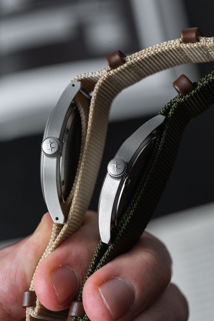 The steel case of the watch is complemented by a green textile NATO strap. The model stands out for its excellent legibility and easy clarity, which is required for military watches. The dial, which in its form does not deny the military model, is protected by a sapphire crystal. The sapphire crystal is a great advantage in watches as it is almost impossible to scratch.