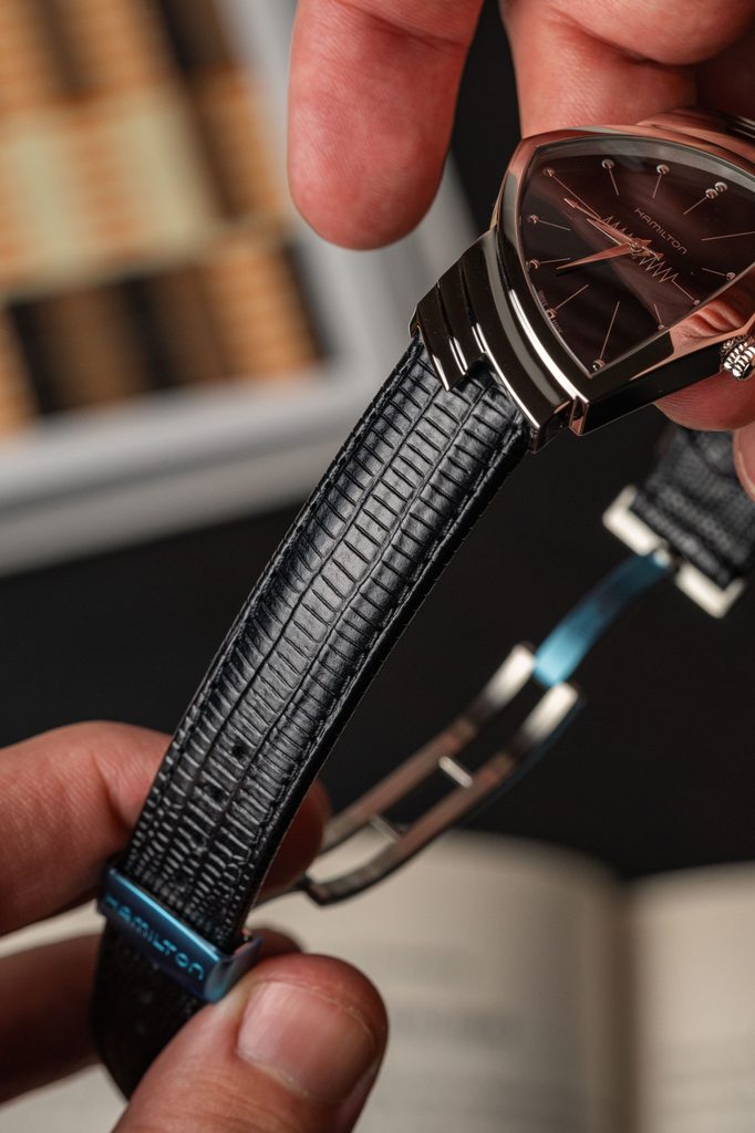 Launched in 1957, the original Ventura made watchmaking history as the world's first battery-powered electric watch. With its bold and distinctive design, the model quickly became an icon and a collector's item. The latest incarnation of the Ventura is a faithful homage to the original and reflects the pioneering celebration of mid-century modern shield-shaped design.