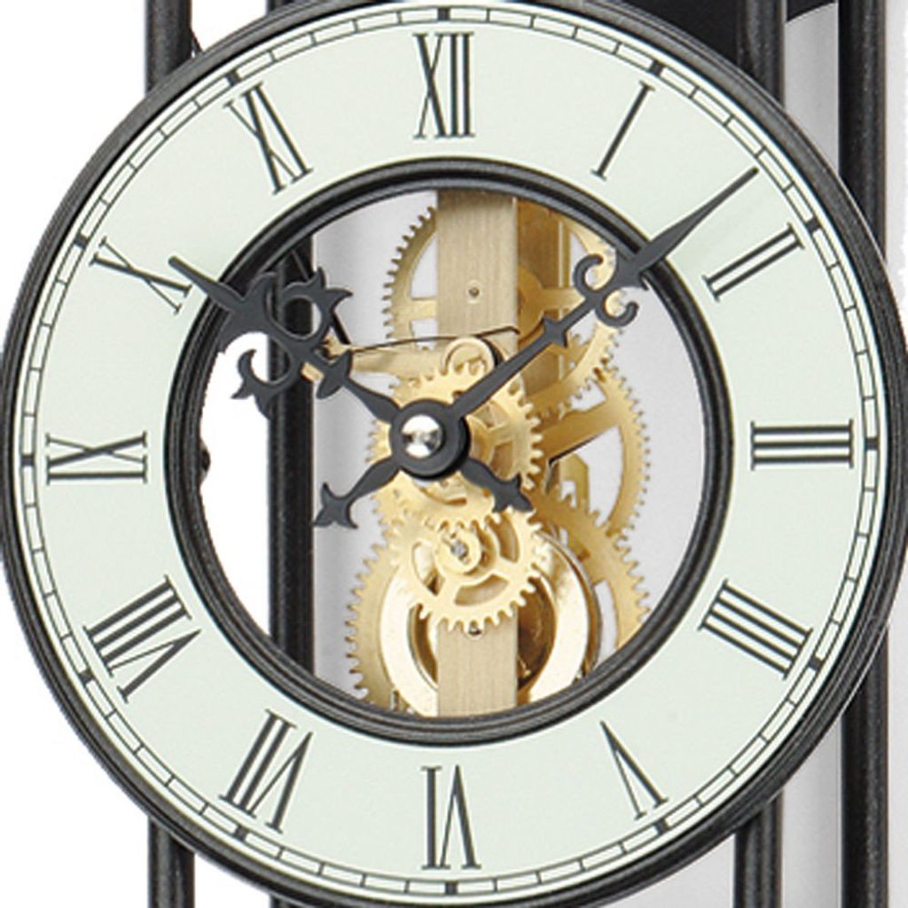 The AMS 302 clock has a metal case, aluminium dial and houses a mechanical movement with an eight-day winding reserve. The clock has an hour strike (a gentle chime sounds every full hour). The movement is made by the renowned German brand Hermle, which ensures its highest quality.