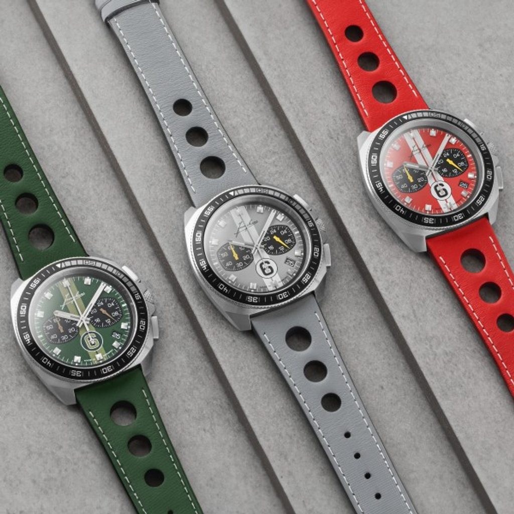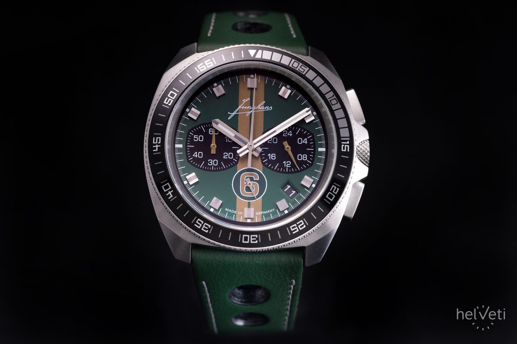 This limited edition of just 200 pieces is a reference to Junghans' rich history as a sports performance timekeeper. As early as about 100 years ago, Junghans was already producing stopwatches for timekeeping in sports, and subsequently even used a separate department to develop technology for sports timekeeping. Junghans timed automobile races, world championships in skiing, rowing and athletics. A highlight was Junghans' participation in the 1972 Olympics in Munich. There, a revolutionary change in timekeeping took place when, for the first time in history, athletes were timed to the hundredth of a second thanks to the use of a quartz movement. This model is most reminiscent of timekeeping in motor racing, which is reflected in the design of the dial and strap.