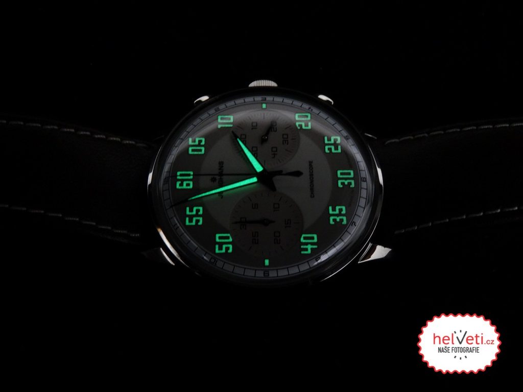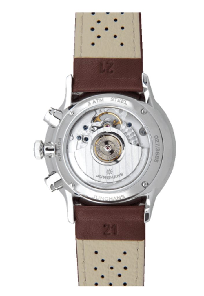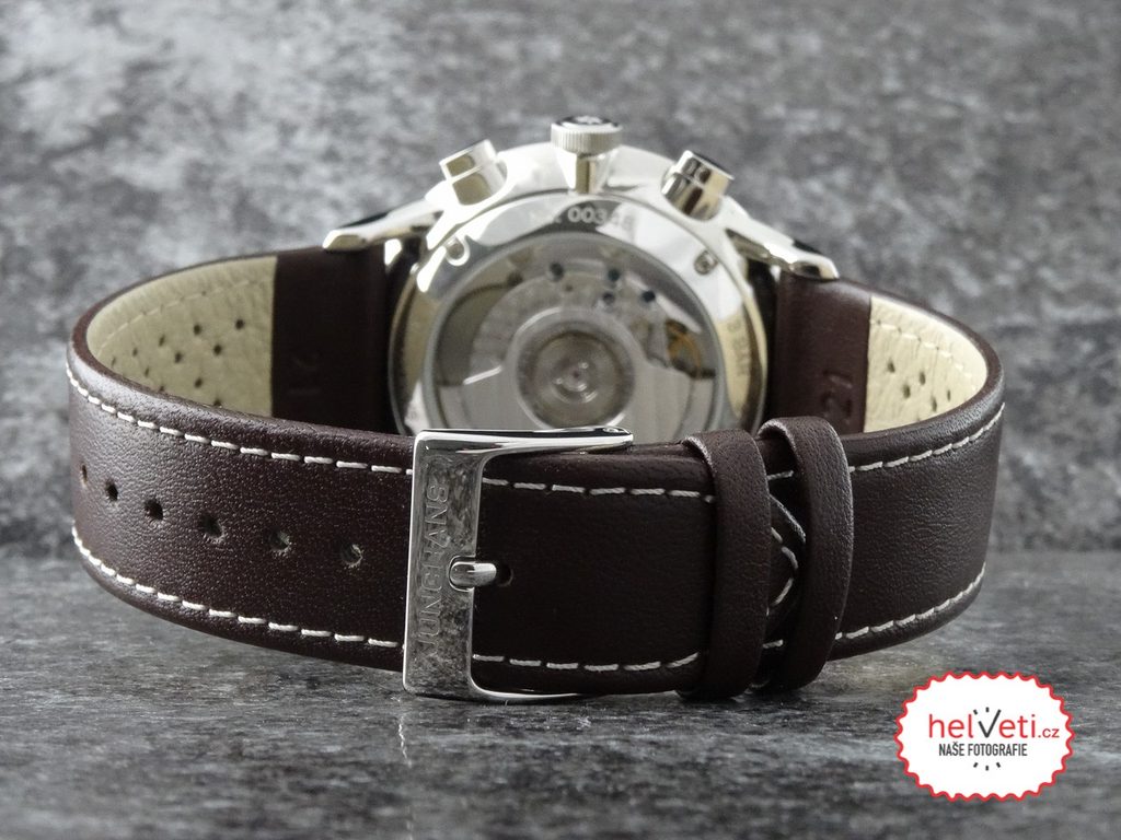 The Junghans Meister Driver Chronoscope 027/3684.02 is equipped with the J880.3 automatic movement, which is based on the Swiss variant ETA 2892-2 with Dubois Depraz 2030 module. The manufacturer incorporates it into the watch in an Elaboré finish with increased shock protection (Incabloc), tuned maximum daily deviation to +/- 14 seconds, or the Junghans logo on the rotor. The power reserve is up to 42 hours.