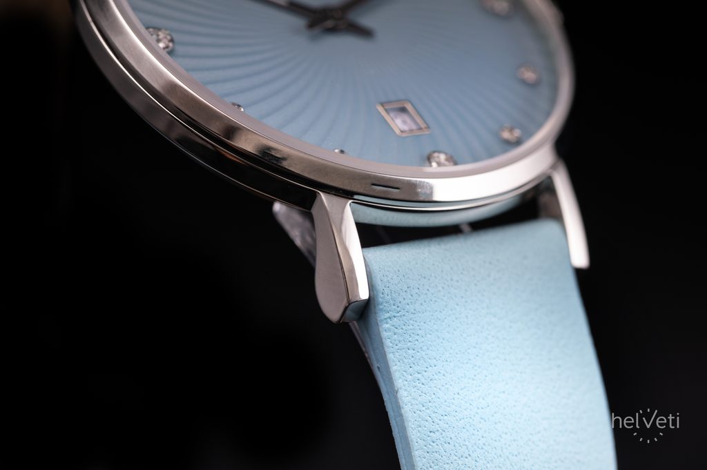 The case of the Junkers Annelise 34 Perlmutt 951.03.16 is made of stainless steel. Inside it, the Swiss Ronda 704 battery movement works reliably. The elegant mother-of-pearl dial is tastefully complemented by sparkling rhinestones in combination with Roman numerals. Everything is protected by a sapphire crystal, which is extremely scratch-resistant.