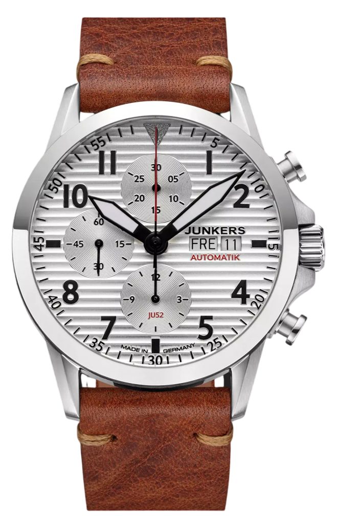Men's automatic watches Men's steel watches Men's Watches Men's watches with stopwatch Men's silver watches Men's sports watches Men's watches with date Watches Men's German watch Men's pilot's watches Men's watches over 400 EUR Men's white watches Men's mechanical watches Men's brown watches JU 52 Men's watches with leather strap JU 52 Men's watches with sapphire crystal Junkers Men’s Watches Junkers