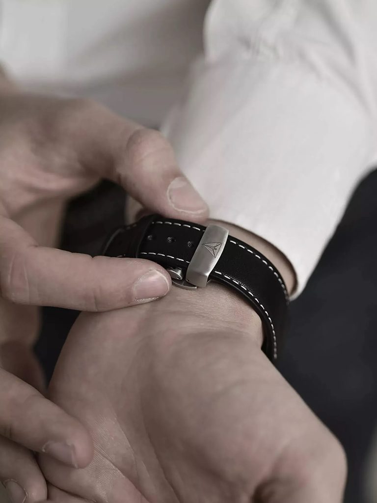 The Junkers 921.01.01 has a case made of stainless steel, which houses a Swiss mechanical movement ETA Valjoux 7750 with automatic winding and 25 jewels. It operates at a frequency of 28,800 semi-frequencies per hour and features a date and day of the week display at the traditional third hour position. This model is also equipped with a stopwatch function and a tachymeter, which is used to measure the average speed over a precisely defined stretch. The watch comes with a stylish leather bracelet.