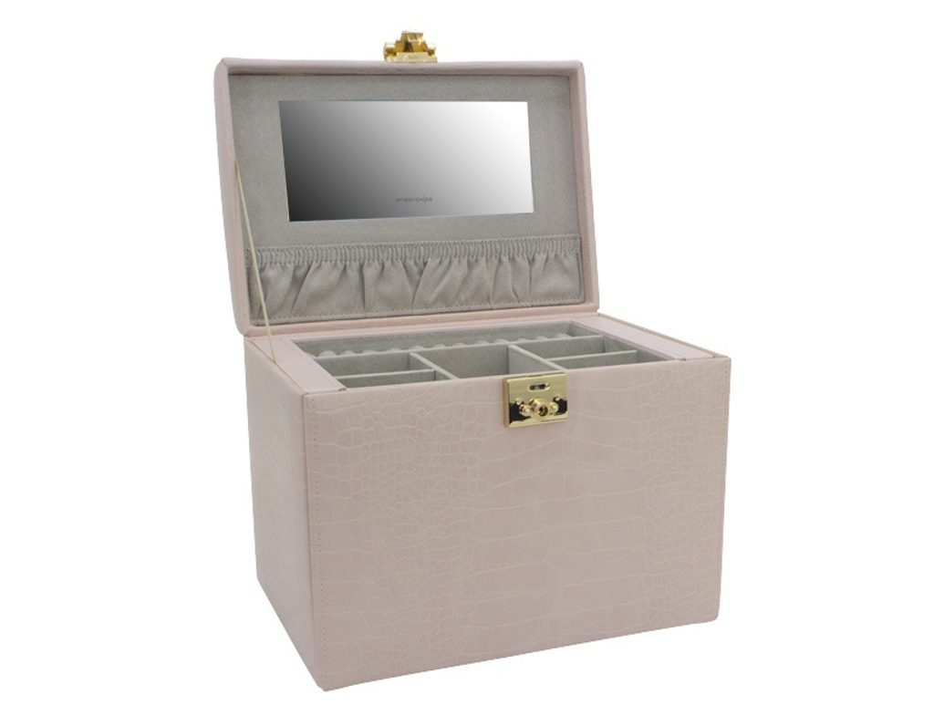 The Friedrich Lederwaren Caiman 20136-4 pink jewellery box is made of synthetic material.