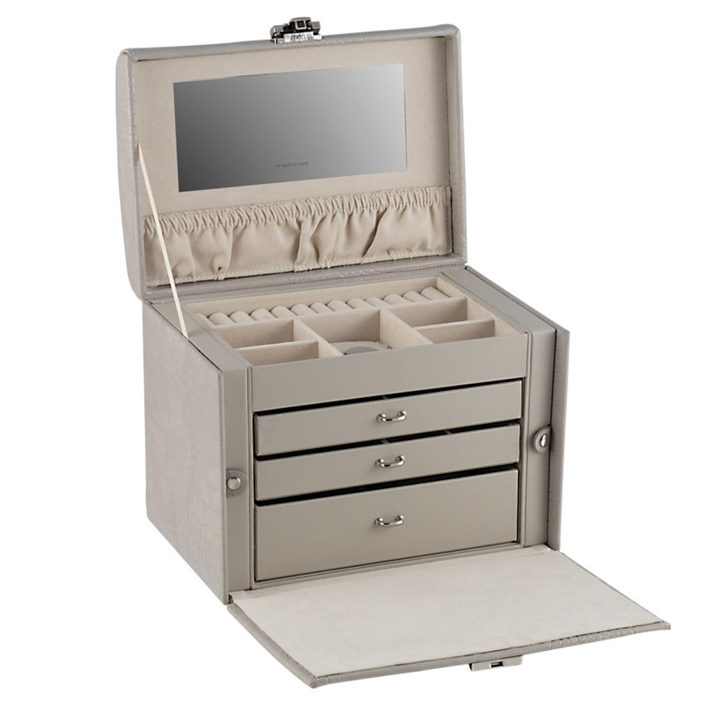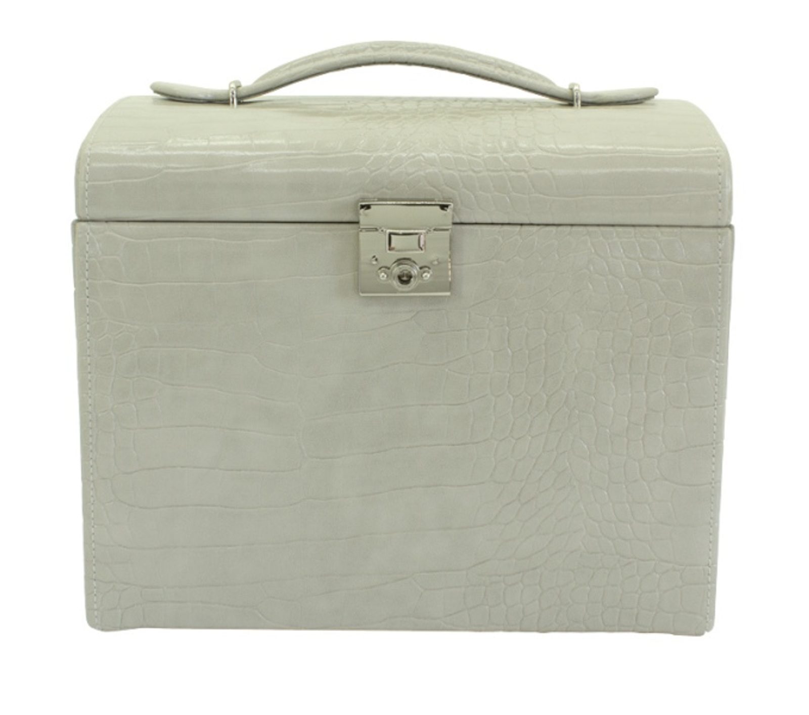 The Friedrich Lederwaren Caiman 20136-9 grey jewellery box is made of synthetic material.
