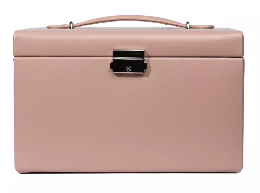 The new Classico Rosé edition combines classic shapes with the finest craftsmanship. The soft pink inner lining gives each piece of jewellery a touch of modern lightness and feminine elegance. The jewellery box has 4 tiers for storing different types of jewellery. Mirror and strap for placing earrings in the lid of the jewelry box. Under the lid is a compartment for rings and two more compartments with cushions for larger jewelry. Then there are 3 more compartments. The jewellery box is lockable.