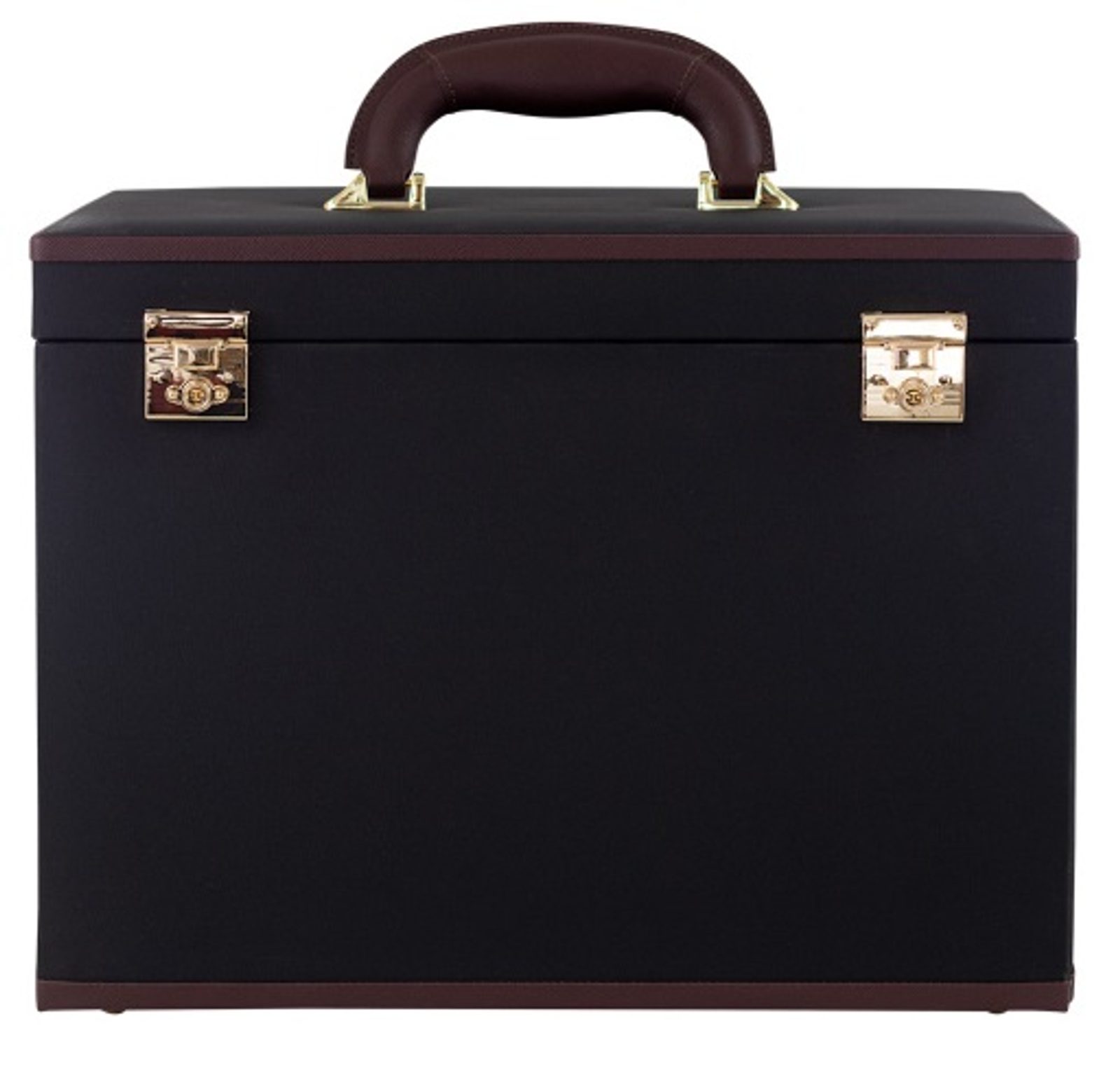 The Friedrich Lederwaren Copenhagen 23336-2 black jewellery box with many storage compartments for all jewellery and also watches is made of polyester.
