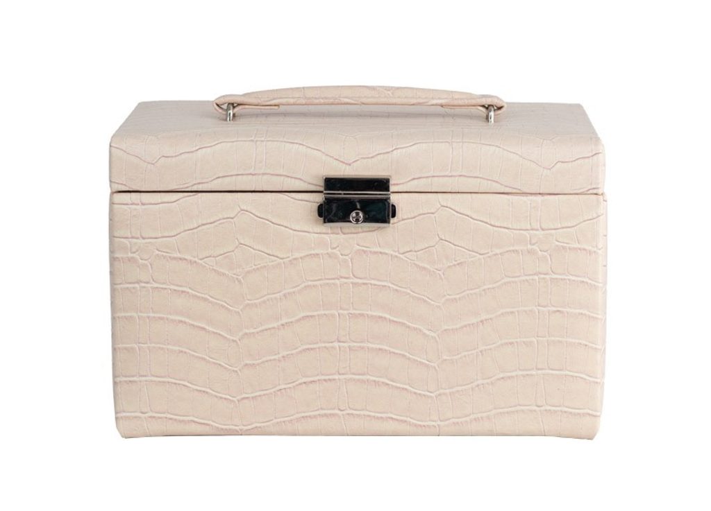 The Friedrich Lederwaren Jolie 2.0 23254-30 pink jewellery box is made of synthetic leather with a crocodile pattern. The interior is made of grey velour.
