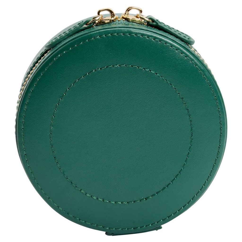 Travel jewelry box Wolf Sophia Round 392312 green. The Sophia collection combines the classic with the contemporary. It is covered in quality leather with gold coloured metal accessories.