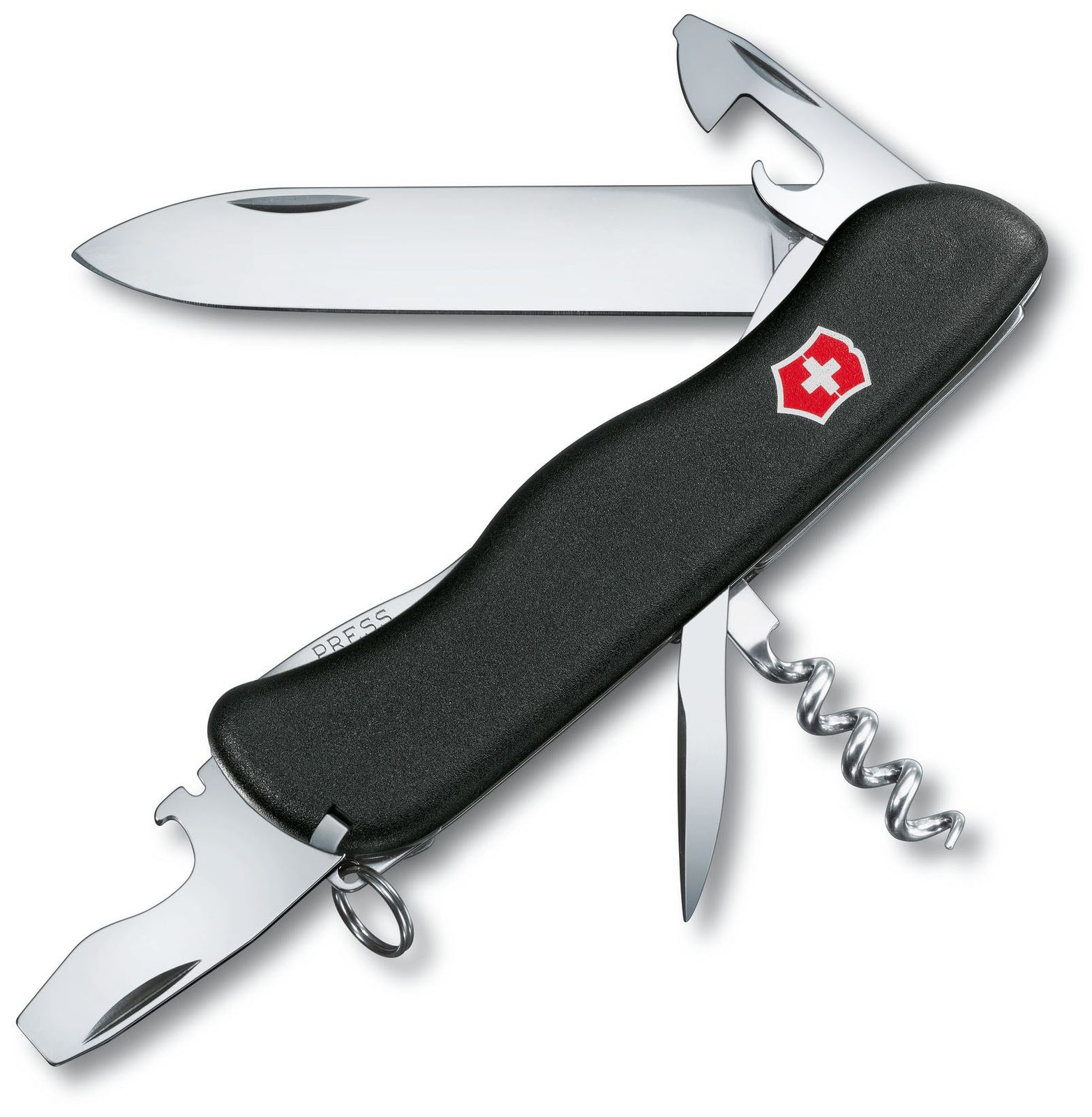 The Vicorinox Picknicker offers a total of 11 functions, making it a versatile helper. Swiss quality guarantees a long service life and the stainless steel knife will not let you down even in tough conditions. With the steel loop, you can hang the knife by your keys or on a loop. Thanks to its length of 111 mm and low weight of 103 g, it fits easily into your pocket and you won't even notice its presence. The main blade is 90 mm long and has a push lock for extra safety.