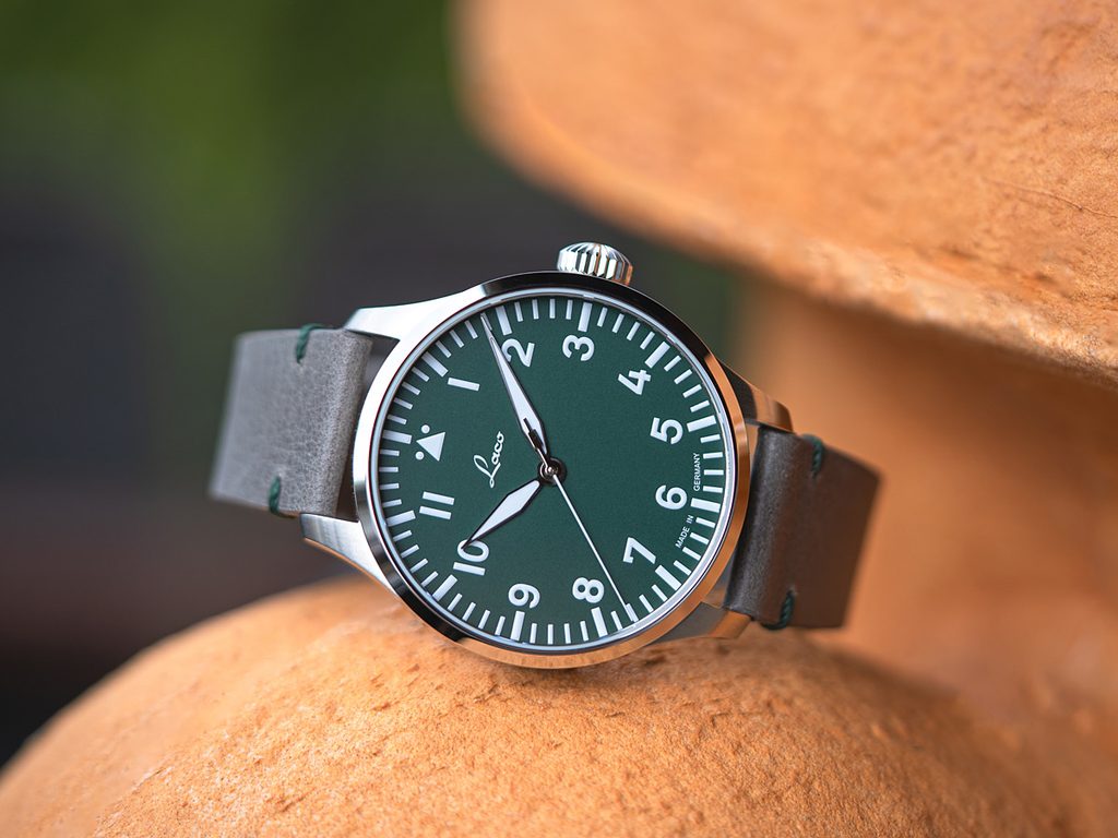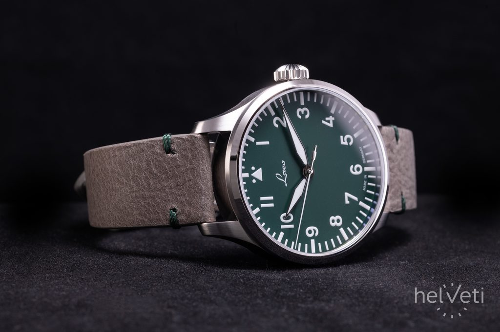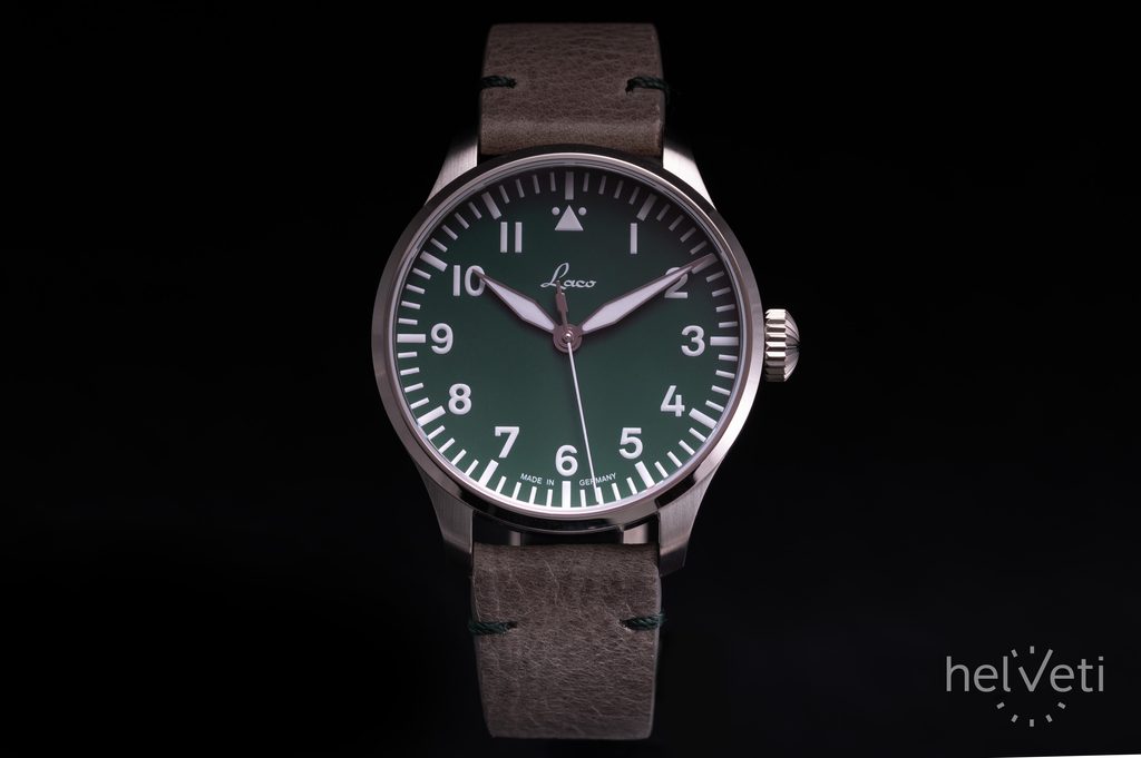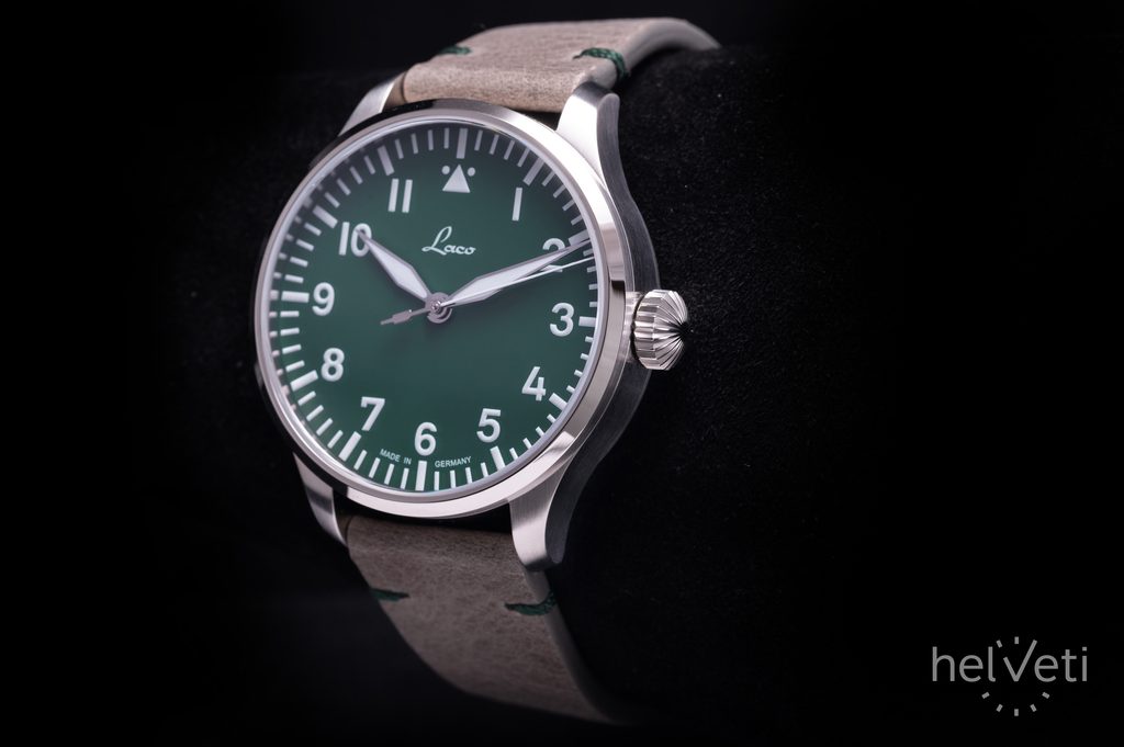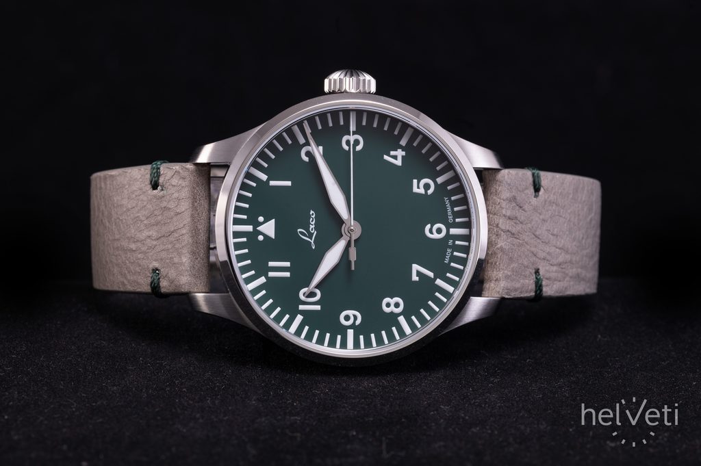 The German Laco Augsburg Grün 42 is a limited edition watch limited to just 250 pieces. At first glance, it catches the eye with its atypical matt green dial and classic pilot design, which is characterised by its cleanliness and excellent clarity, making it very popular not only among watch fans.