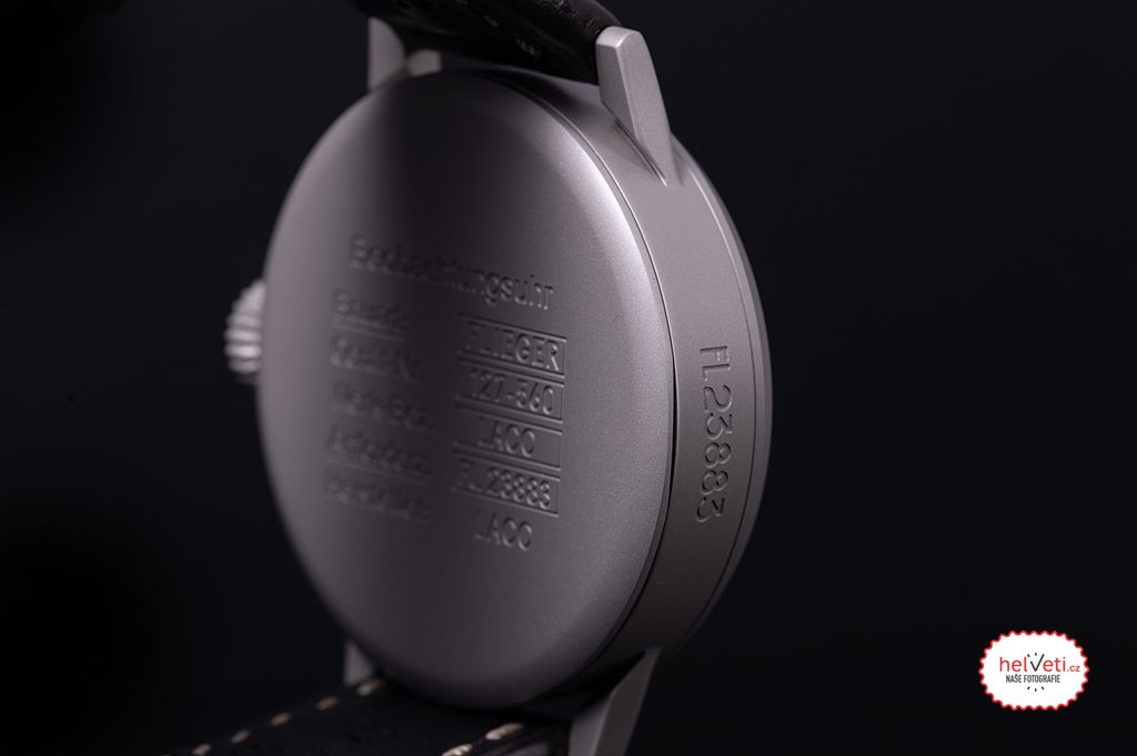 The models in the Flieger Pro range offer the possibility of creating a watch to your exact specifications. Three case sizes can be chosen - 43, 40 and 37 mm, and the case surface can be brushed or sandblasted. The dial also allows for customisation, with both type A and type B available, with and without a logo, with and without a date display. For the date plate, you can also choose the colour of the backing, black and white are available. You can also easily customize the watch by choosing the position of the crown (left/right), the movement (automatic/manual and elaborate/top). You can add decoration to the movement for an extra cost and also choose a dial with a see-through bezel. The sapphire crystal can be enhanced with a double-sided anti-reflective coating.